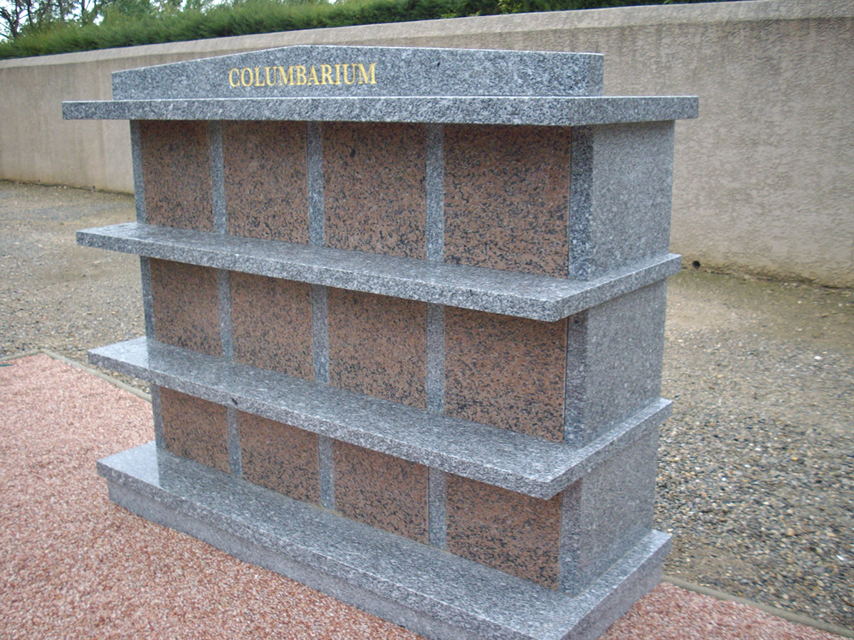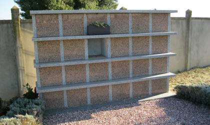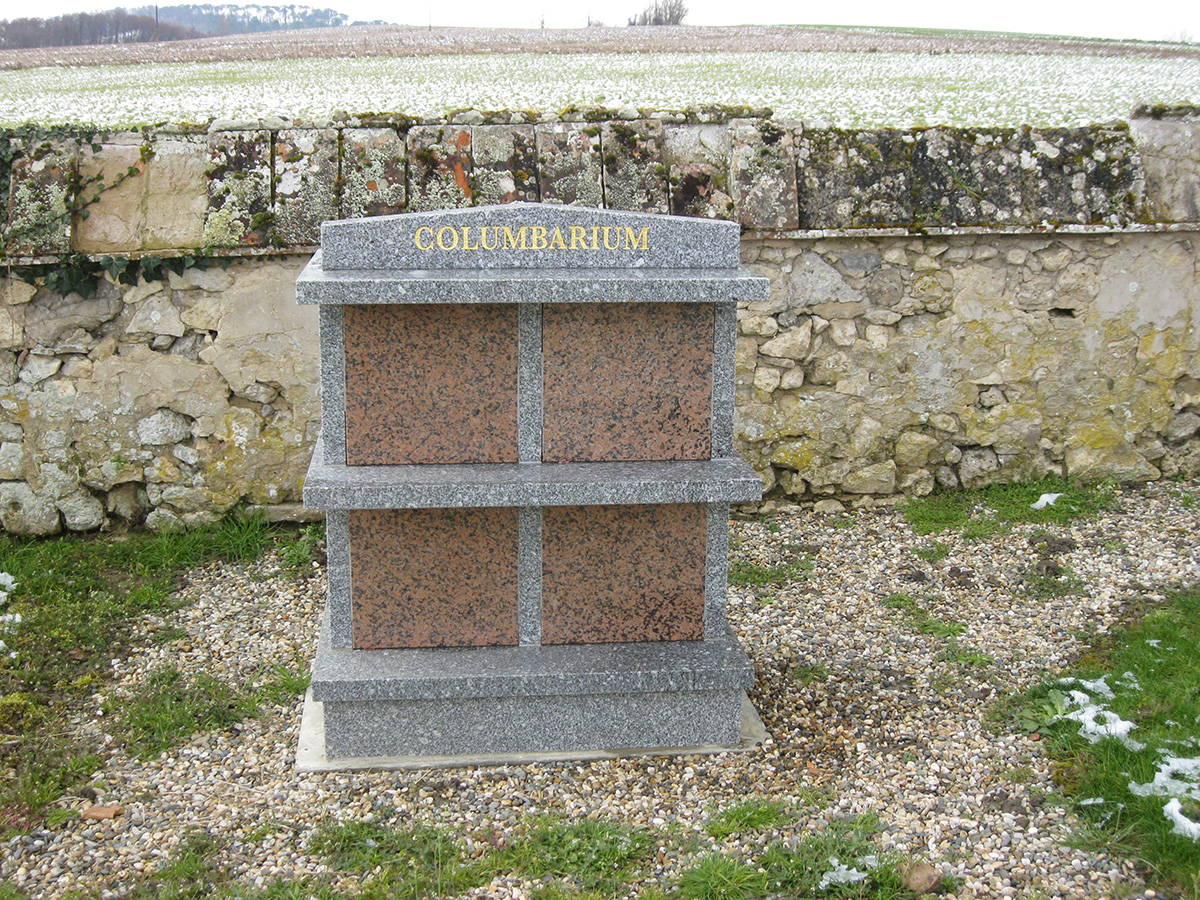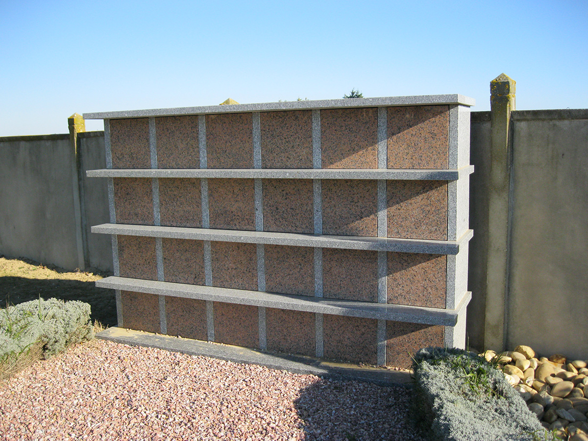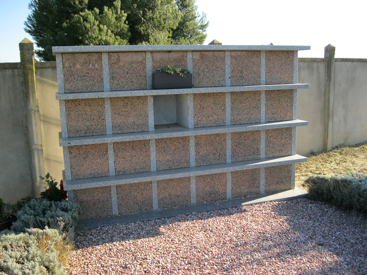 Espace sur l'avant des portes pour poser cases et plaques funéraires.