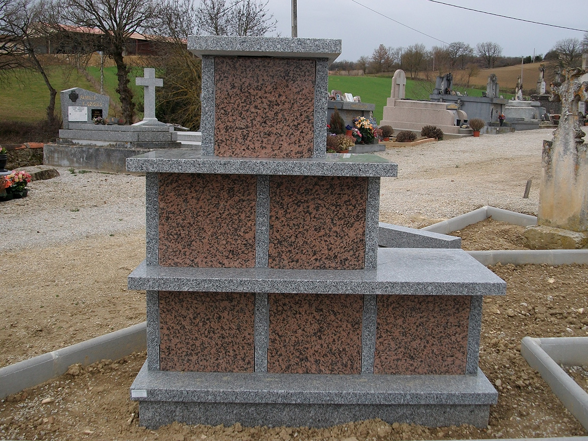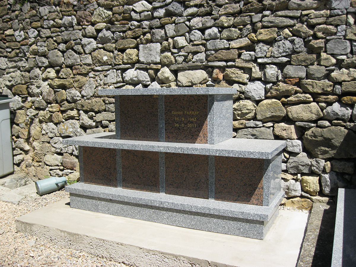 Espace sur l’avant des portes pour poser des vases et plaques funéraires.